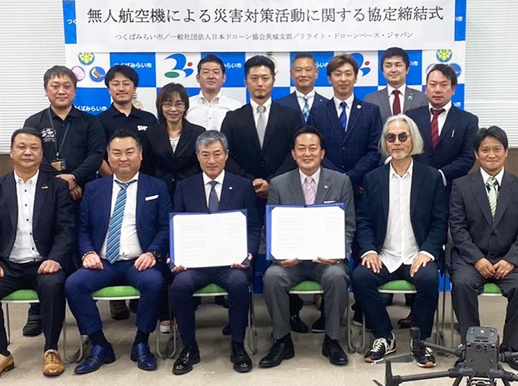 自治体(下妻市、常総市、つくばみらい市、嬬恋村等)との災害時支援協定に基づき、ドローンによる被災状況の空撮、物資輸送、監視活動を実施。全国組織(JDA)とのネットワークを活かし、空からの安全保障を担う公的活動に邁進します。